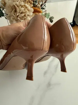 Elegantes zapatos de charol con tacón bajo de Mango - Tacón de 4 cm. - Color camel. - Punta fina. - a estrenar con etiquetas