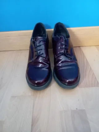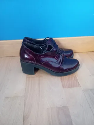 Elegantes zapatos de charol con un acabado brillante. - Diseño clásico con cordones. - Suela resistente. Tiene un poco de desteñido (se ve en la foto)