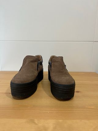Zapatos de ante con un diseño moderno y cómodo. - Plataforma gruesa y resistente. - Detalle de cremallera frontal. - Acabado en ante.