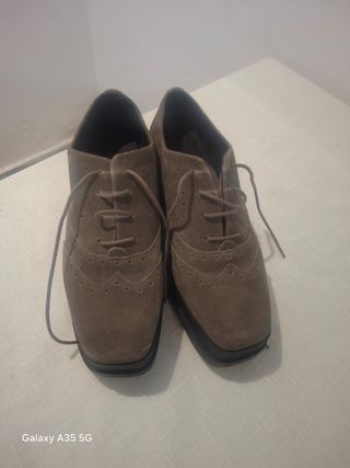 Elegantes zapatos de ante para mujer. - Color beige y marrón. - Talla 40.