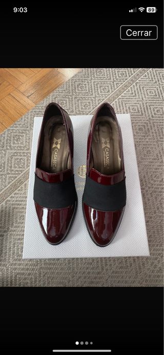Zapatos de tacón Dorking en color Rioja. Mocasines Náuticos sin usar. - Diseño tipo mocasín. - Tacón grueso y cuadrado. - Suela de goma antideslizante.