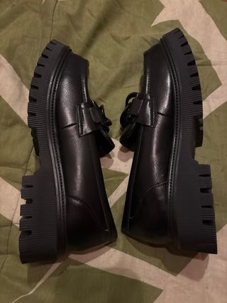 Zapatos de plataforma de Pull and Bear en color burdeos. - Diseño tipo mocasín. - Suela gruesa con relieve.