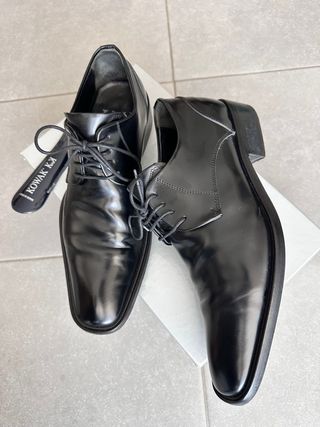 Elegantes zapatos de vestir italianos. - Diseño clásico. - Acabado brillante. - Cierre con cordones.