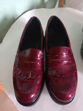 Elegantes zapatos de charol en tono rojo. - Diseño tipo mocasín con flecos. - Acabado brillante. - Detalle de logo en el lateral.