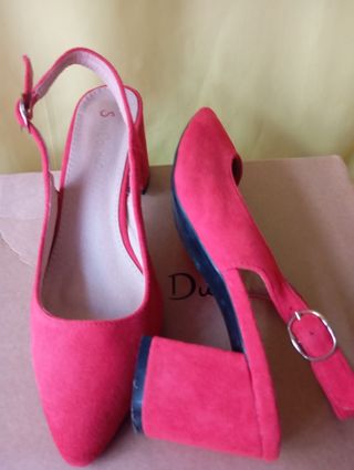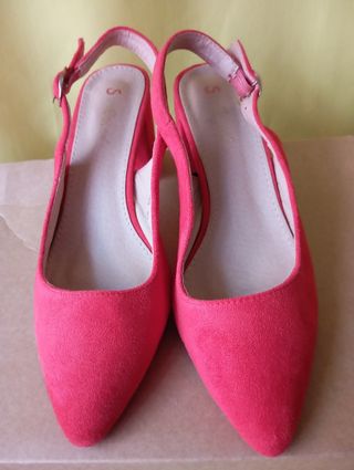 Preciosos zapatos de mujer de color rojo. Son de tacón bajo y tipo salón, abiertos por detrás. Ideales para cualquier ocasión. - Diseño elegante y cómodo. - Material suave y agradable al tacto. - Tacón de altura media. Ver siguiente fotos otros de la misma talla si se queda con los dos pares,nueve euros.