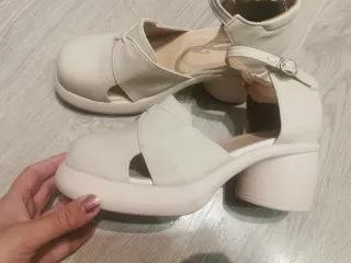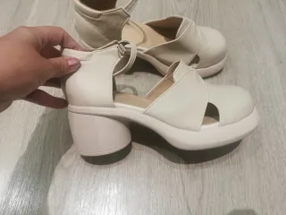 Zapatos de plataforma con un diseño moderno y elegante. - Color beige - Correa ajustable al tobillo. - Suela gruesa y cómoda. - Diseño abierto tipo sandalia. - Están completamente nuevos, sin ningún uso.