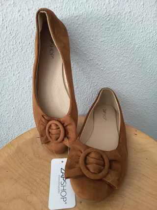 Zapatos planos de la marca ZAPSHOP, a estrenar. - Diseño con lazo y detalle de hebilla. - Material exterior tipo ante.