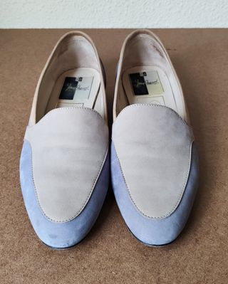 Se venden zapatos planos marca JAIME MASCARO antigua talla 35 que corresponde con la talla 36 actual, muy bien cuidados y con poco uso. Fabricados en Nubuch. Color azul clarito, gris perla y vainilla. Se entregan con caja original. Se entrega en mano o se puede enviar por correo costes de envío aparte.