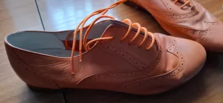 Elegantes zapatos estilo Oxford en un vibrante color naranja. Perfectos para añadir un toque de color a cualquier atuendo. - Diseño con cordones. - Detalles troquelados. - Suela plana.