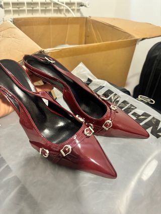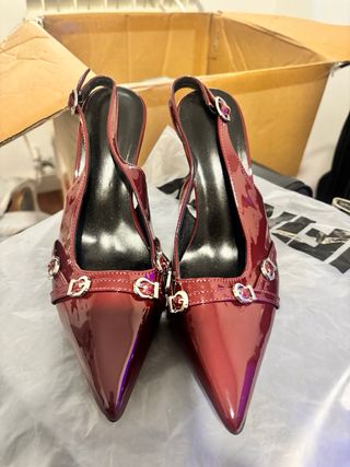 NUEVOS** Elegantes zapatos de tacón en un bonito color vino tinto. Perfectos para cualquier ocasión. - Diseño de tacón alto. - Acabado en Charolina