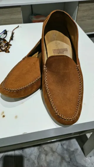 Zapatos estilo mocasín de la marca Pie Santo. -Plantilla extraíble apto para usar plantillas ortopédicas - Diseño elegante en color marrón oscuro. - Detalle de picado en la pala. - Suela con tecnología Dual Comfort para mayor comodidad. -Solo lo he llevado dos días porque me apretaban. -Solo hago envíos. No rebajo precio.