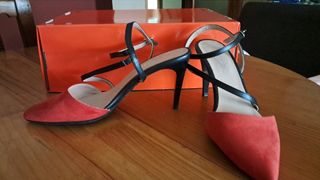 - marca L.K. Bennett; talla 37; tacón 9cm (15€) - marca Karen Millen; talla 37; tacón 10cm (15€) - marca Exé; talla 37; tacón 9cm (15€) - marca eferri: talla 37: tacón 8cm (10€) Todos los zapatos son de cuero natural. Si llevas los 5 pares juntos, el precio es de 50 euros. Si vas a llevar 2 o 3 pares, te haré un descuento