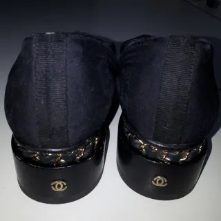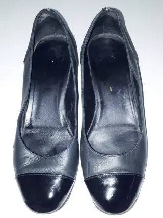 Elegantes zapatos de tacón medio de la marca Chanel. - Diseño clásico en color negro. - Talla 39. La marca en el interior está parcialmente borrada por el uso pero la referencia se ve perfectamente