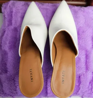 Elegantes zapatos tipo mule de la marca INYATI. - Color blanco. - Talla 40. - Diseño destalonado. - Punta fina.