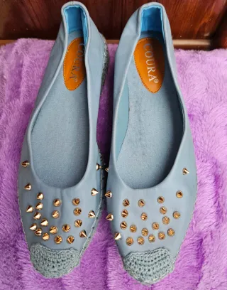 Zapatos planos para mujer. - Talla 39-40. - Diseño con tachuelas doradas. - Punta tejida. - Detalle de logo en la plantilla.