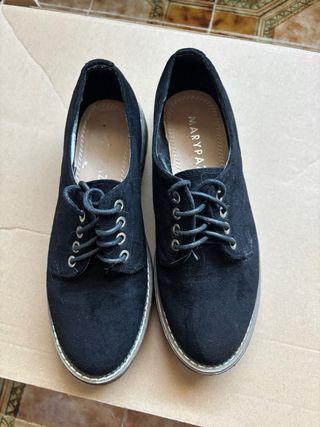 Zapatos de vestir Marypaz en color negro. - Diseño de cordones. - Suela gruesa. - Detalle de ribete plateado. - Solo los he usado una vez - No tengo la caja original