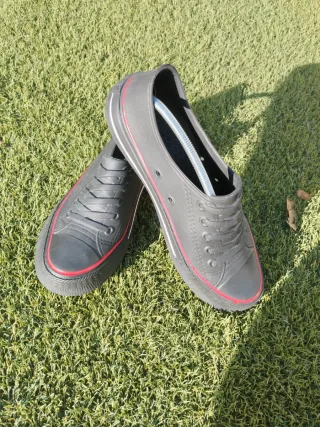 Zapatos Crocs de estilo deportivo con un diseño moderno. - Color principal negro. - Ribete de contraste en color rojo.