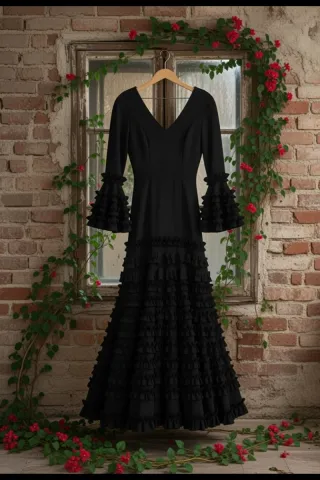 Traje de flamenca de licra gruesa mate de gran calidad con una sola puesta. Su precio original fueron 110€ y sólo me lo he puesto en una ocasión. Mido 1,65 y queda al ras de los zapatos de 4cm . Cualquier duda te respondo , no te lo pienses es una ganga.