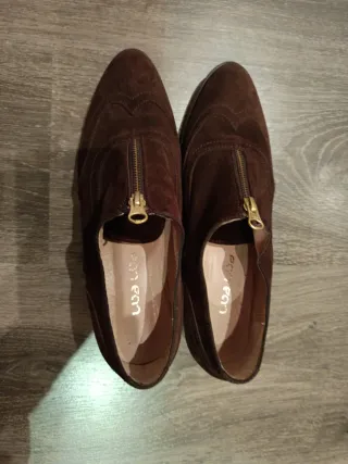 Elegantes zapatos de ante en color marrón. Un básico para cualquier armario. - Material: Ante - Tacón: Medio - Diseño: Clásico - En su caja original