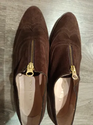 Elegantes zapatos de ante para mujer. - Diseño con cremallera frontal. - Detalle de picado tipo wingtip.