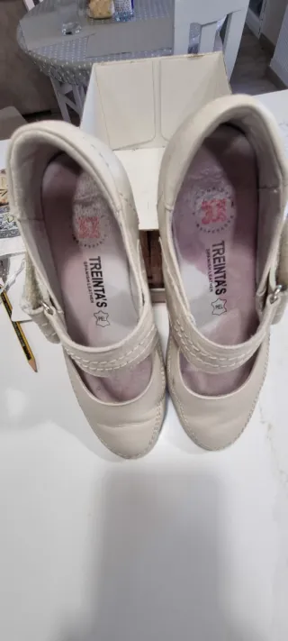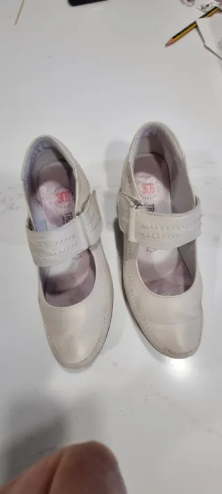Preciosos zapatos blancos para niña, ideales para comunión o eventos especiales. Cuentan con un diseño elegante y un detalle de lazo. - Material exterior: Piel - Cierre con tira y hebilla - Adorno de tachuelas y lazo ¡ NO ME DEJA PONER LA MARCA VERDADERA DE LOS ZAPATOS, SUBI UNA FOTO PARA QUE VEAIS LA VERDADERA MARCA PERO EN EL FILTRO DE MARCA NO ES LA CORRECTA YA QUE WALLAPOP NO ME DEJA PONER LA VERDADERA MARCA Y DEJAR ESE HUECO VACIO !