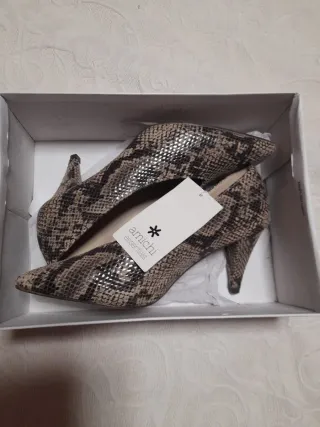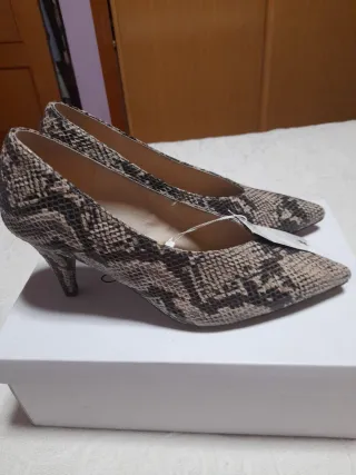 Elegantes zapatos de tacón Pitillos con un diseño moderno. - Combinación de piel lisa y efecto piel de serpiente. - Tacón cómodo para el día a día. Usados 2 veces