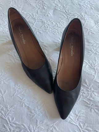 Elegantes zapatos de tacón de Pedro Miralles. - Color negro. - Diseño de punta fina. - Tacón metálico.