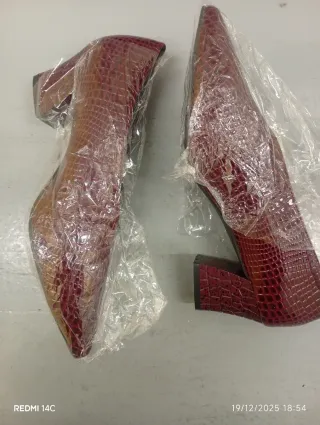 Elegantes zapatos de tacón para mujer con un diseño texturizado. - Color rojo vibrante. - Acabado imitación piel de serpiente. - Tacón fino.