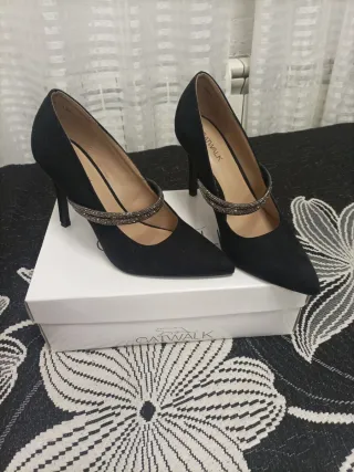 Elegantes zapatos de tacón de la marca Catwalk. - Diseño de punta fina. - Tira adornada con pedrería. - Tacón de aguja.