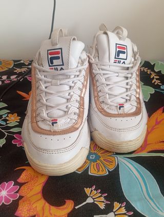 Zapatos Fila blancos y dorados