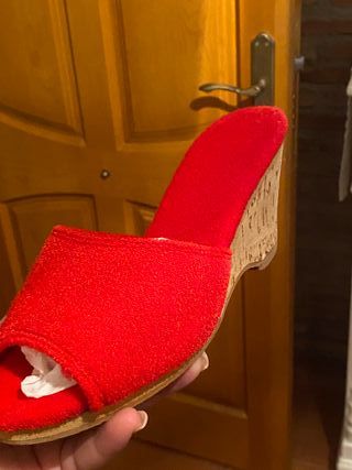 zapatos rojos con un diseño moderno y cómodo talla 42 Usados un rato para un disfraz de madre mala de coraline. - Material textil con detalle de esparto en la suela. - Cierre de pulsera con hebilla. - cerrado por delante y abierto por detrás Alpargatas# zapatos# 42#
