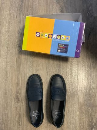 Zapato para niño, color azul marino, talla 30, usados 2h literalmente. Sin cordones, tipo mocasines. Prácticamente nuevos.
