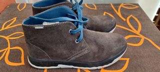 Zapatos de niño de la marca Pablosky. - Exterior de ante gris. - Forro interior azul. - Cordones azules. - Suela de goma.