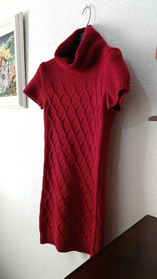 TALLA 40 pero por ser en lana daría 38-40-42 El Corte inglés (fórmul@ joven Vestido de punto con cuello alto y manga corta -Cuello alto -Prenda elegante y cálida. -Muy bien trabajada la lana ,la parte delantera con ochos y la trasera con punto garbanzo. Se entrega limpio y listo para usar. DALE VIDA 🌎... Más vestidos lana diversos colores, anoraks,zapatos, bolsos, botes cristal, sábanas, colchas Indias nuevas,peluches, juguetes, mochila niños, libros y cositas interesantes en mi perfil de todo tipo BARATISIMAS...