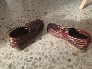 Zapatos náuticos de niño Apache, color marrón. Ideales para un look casual. - Son de cuero. - Tienen suela de goma. - Están usados, pero en buen estado.