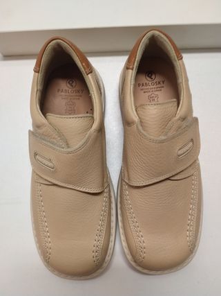 Zapatos pablosky de piel color crema suelo antideslizante de caucho a estrenar a mitad de precio aproximado ver fotos como descripción. Hecho en España. Talla 34 ver en foto.