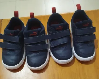 Conjunto de dos pares de tenis puma para niño. - Cierre de velcro. - Tirador trasero. - Suela blanca.