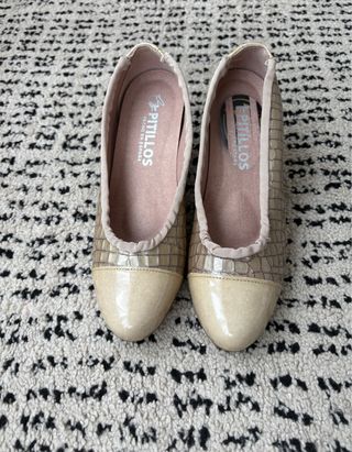 Zapatos de la marca Pitillos en color beige y talla 38. - Modelo CONFORT PITILLOS. - Precio original P.V.P 74,95€. - Comprados hace 4 meses. 1 solo uso. Vendo por no ser mi talla. - Recogida Molins de Rei