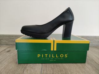 Zapatos de salón negro de piel, marca Pitillos. Lo vendo por falta de uso (únicamente se ha usado una sola vez). Medida del tacón: 8 cm