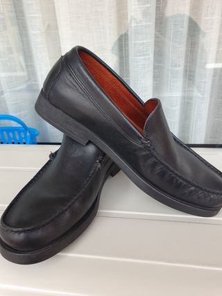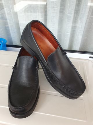 mocasin negro, piel, suela goma, para vestir o ir de sport, se han puesto una sola vez, están prácticamente nuevos, las tapetas originales no están desgastadas, están impecables.