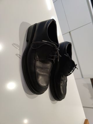Zapatos de piel de vestir marca Snipe, color negro y talla 40. Suela de látex muy cómoda y flexible. En buen estado a pesar del uso. Sin ningún descosido, rotura o afectación relevante.