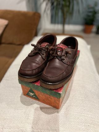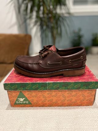 Mocasines náuticos de la marca Snipe, en color marrón. Son un calzado elegante y cómodo, ideal para cualquier ocasión. - Sin estrenar. - Diseño clásico. - Cordones de ajuste.
