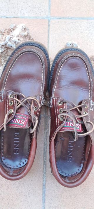 Calzado de piel Con cierto desgaste pero todavía se pueden usar perfectamente. Tapas y suelas de goma originales y casi nuevas. Marca Sniper Talla 41
