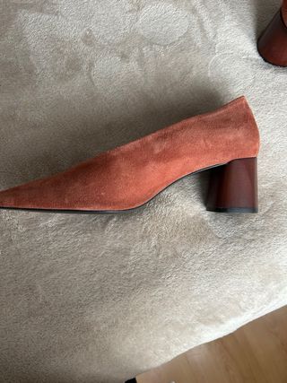 Zapatos Uterqüe ante. Talla 36 en muy buen estado Ligero desgaste en la parte interior, como se observa en la foto, pero que no se nota una vez puestos Tacón 10 y medio aproximadamente