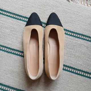 Elegantes bailarinas de la marca Uterqüe. - Diseño bicolor en beige y punta negra. - Acabado en ante. La puntera es de tela. Apenas utilizadas en 2-3 ocasiones.