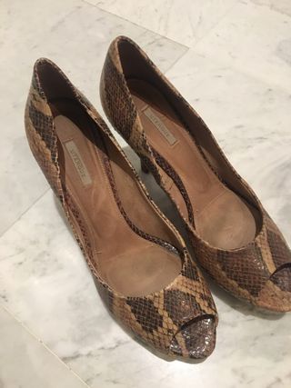Zapatos tacón Uterqüe talla 39, con plataforma, animal print.