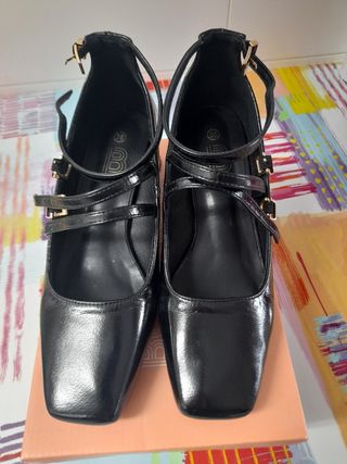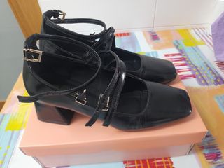 Zapatos negros piel vegana talla 38. Utilizados una única vez