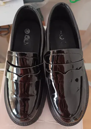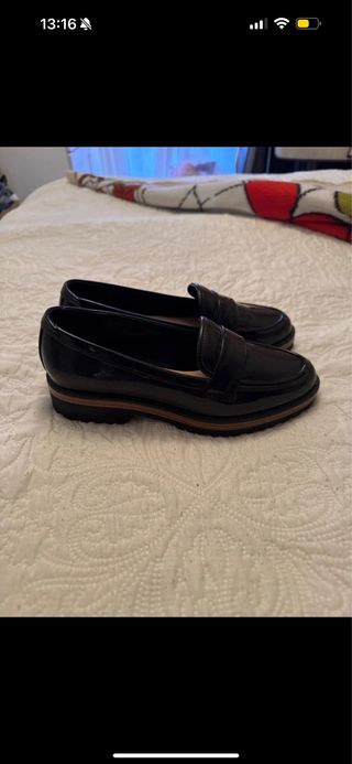 No envío mediante impost. Mocasines de charol vegano en color negro. Un básico para cualquier armario. - Diseño tipo mocasín. - Acabado brillante.
