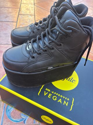 Botas de plataforma altas de la marca Buffalo. - Diseño de caña alta. - Cierre con cordones. - Suela gruesa de plataforma. - Detalle de logo en la lengüeta. - Material vegano aprobado por PETA.