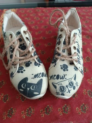 Zapatos con gatos. Goby. Piel vegana. Talla 38
